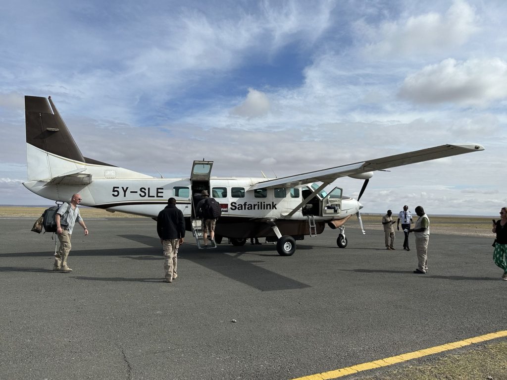 早朝から国内線の飛行機でアンボセリに向かいます。利用したのは、Safarilink011便 ナイロビ7:15→アンボセリ8:15 です。