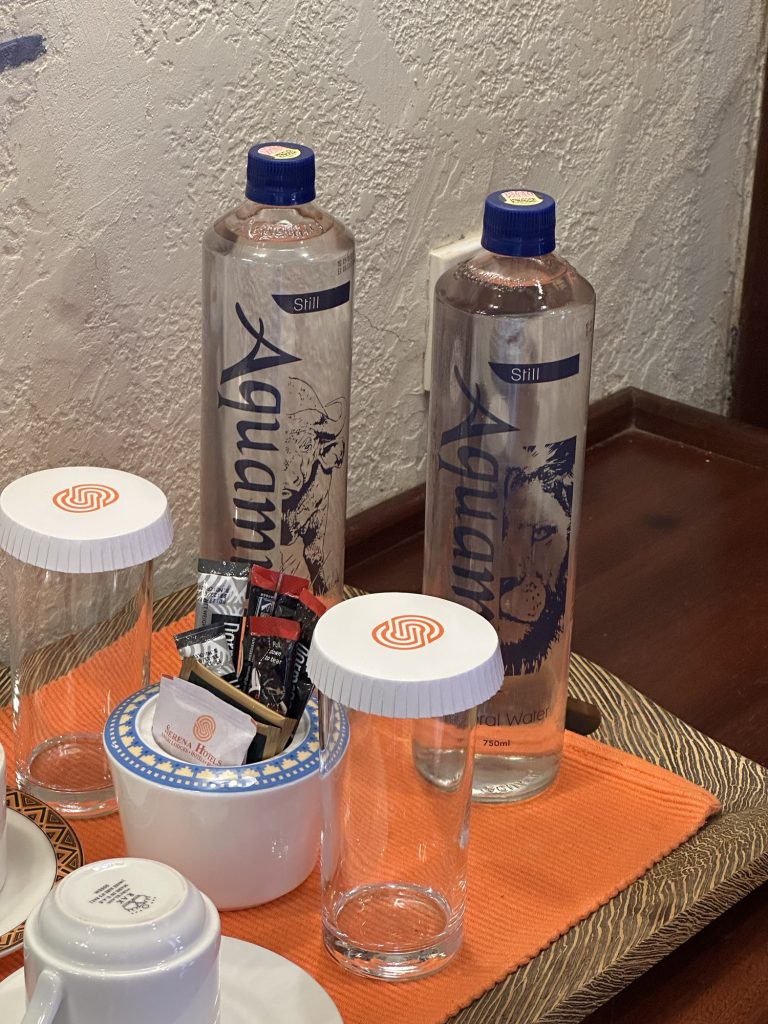 ケニアの水道水は飲めないので、毎日飲料水を補充してくれました。ちなみに容器はペットボトルではなく瓶です。エコですね。