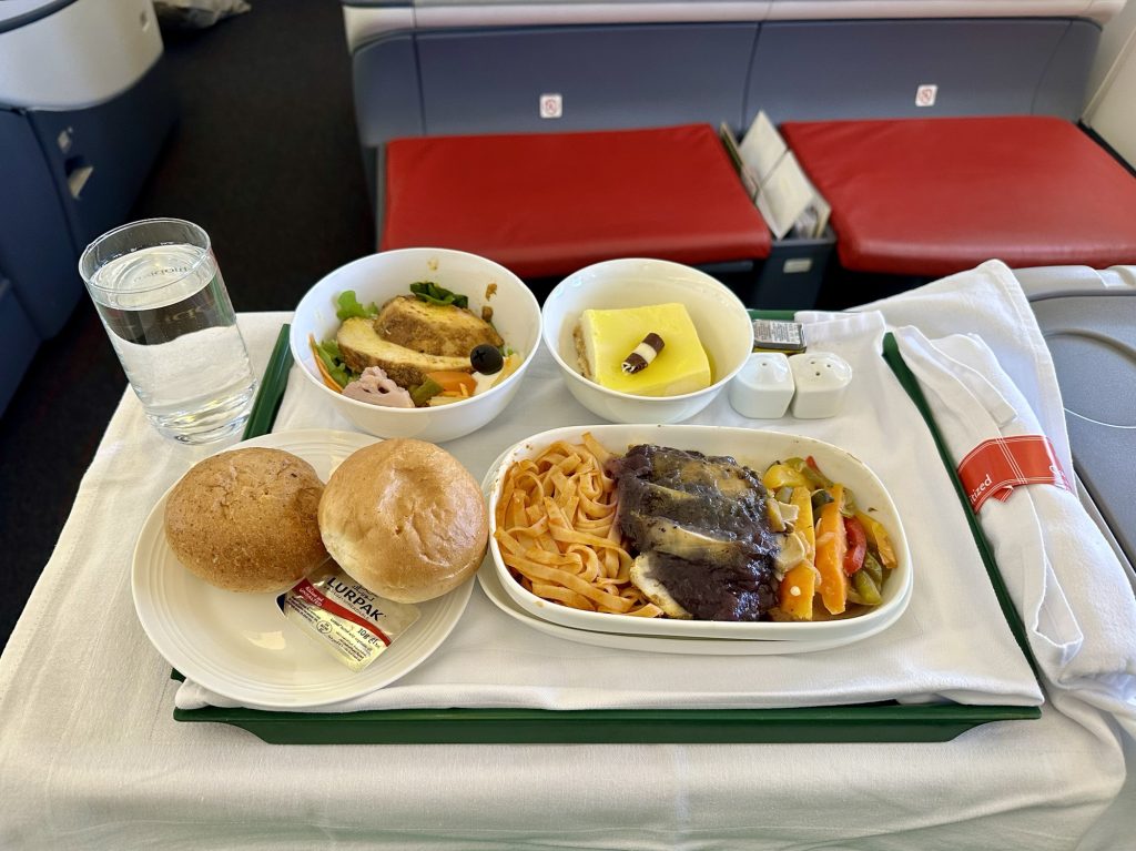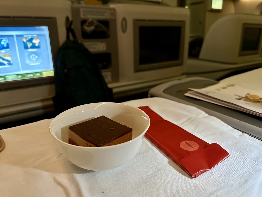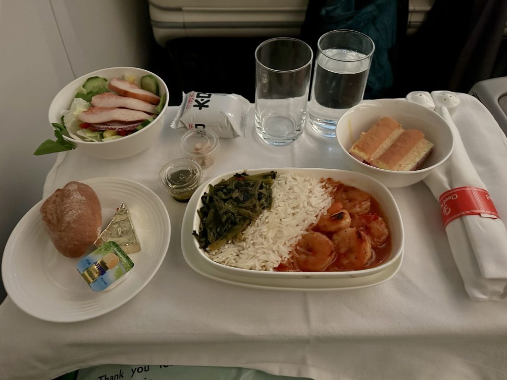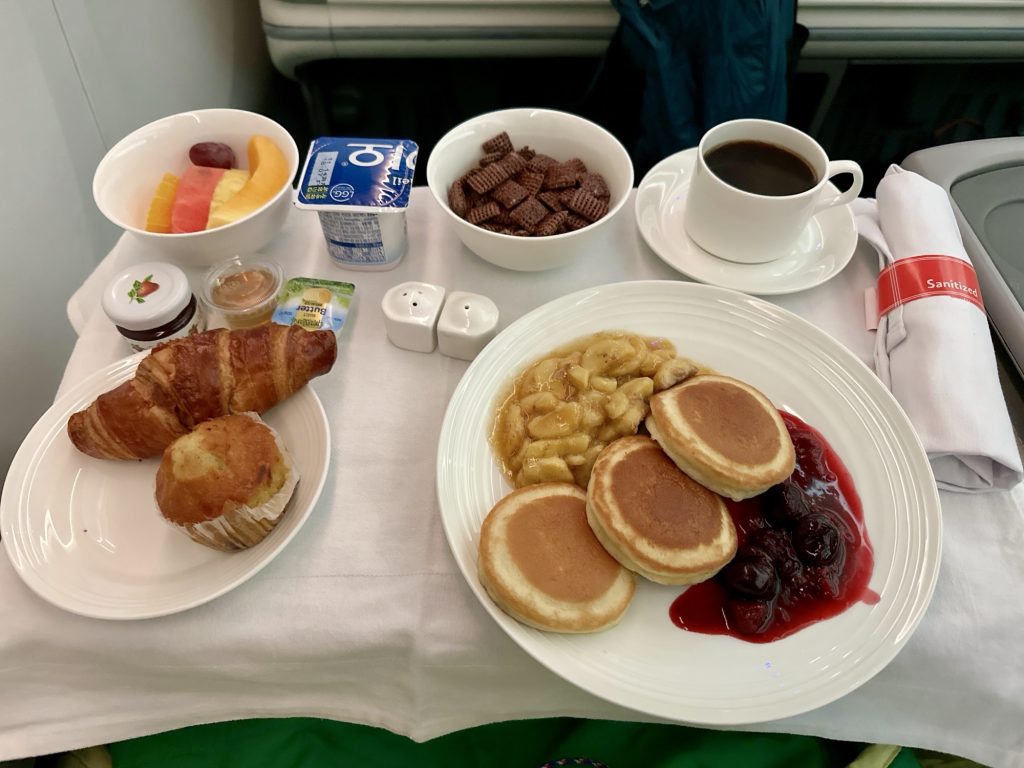 仁川を深夜に出発し再び機内食が提供されたのてすが、お腹いっぱいで食べられませんでした。おそらくそれが一番メインのお食事だったのですが、これから長旅なので体調を優先することに。もしまたビジネスクラスに乗ることがあれば、お腹の配分には絶対気をつけると心に誓いました。。