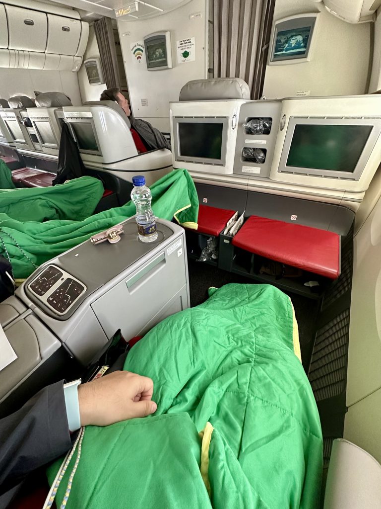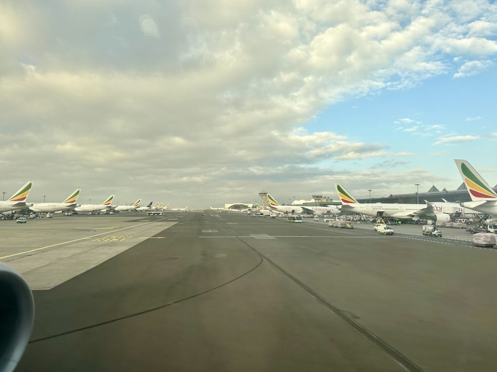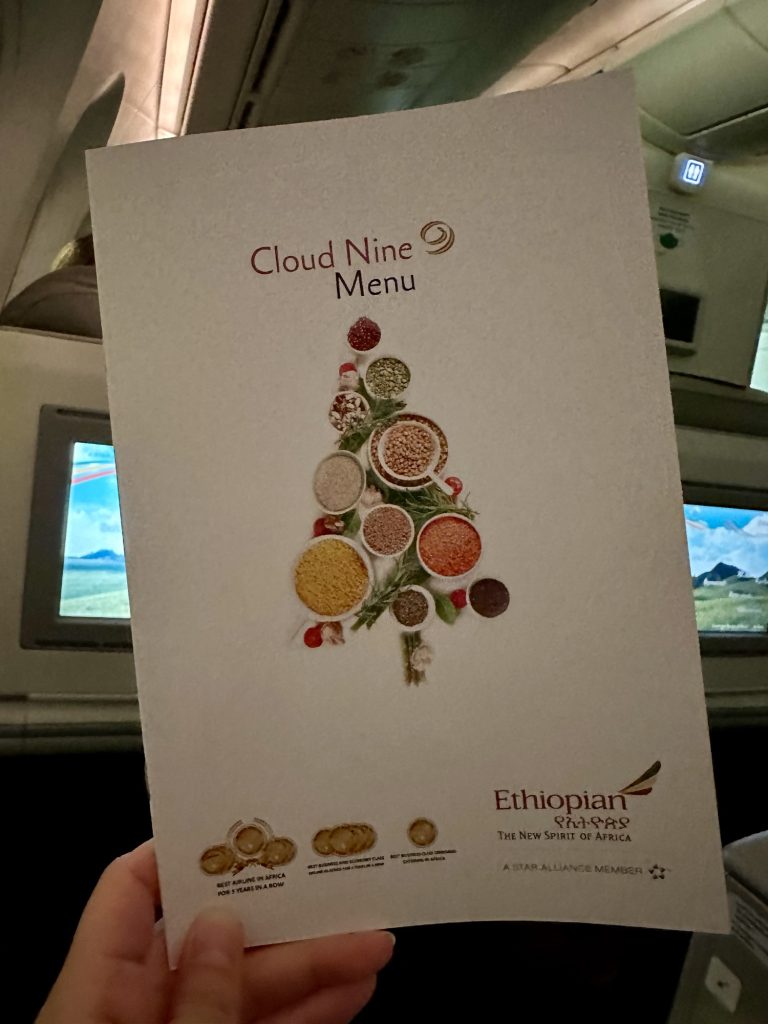 この便は以遠権フライトのため、韓国の仁川でストップオーバーし、エチオピアに向かいます。一度仁川で全員降機して保安検査を受け、再び同じ席へ戻りました。