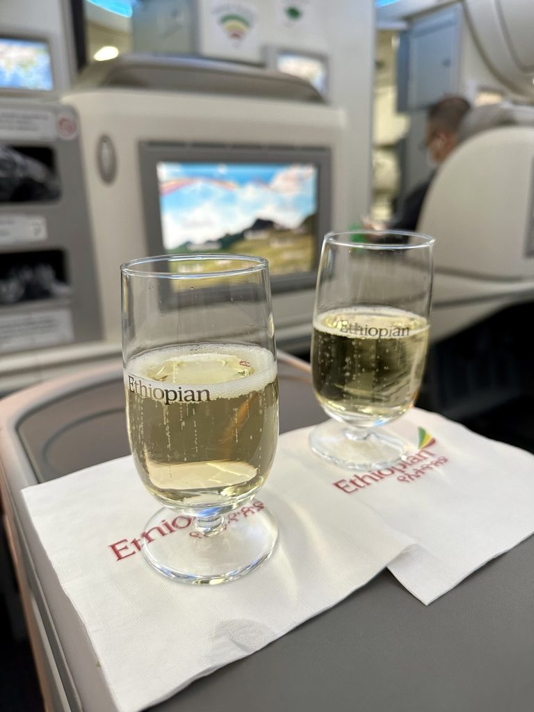 搭乗するのは成田20:40発、エチオピア航空ET673便です。新婚旅行なのでビジネスクラスにしました。マイル様様です。